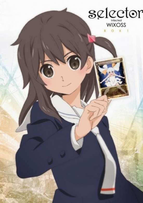 It's hard being the new girl, and Ruuko Kominato knows this better than anyone. She has yet to make any new friends after moving to a new town. Her brother sees her struggling and gives her a deck for the popular trading card game WIXOSS, hoping that it would help Ruuko connect with other people and forge new friendships. In Selector Infected WIXOSS, each WIXOSS deck comes equipped with a LRIG card, which serves as a player's avatar during matches. It all seems pretty straightforward…except for one thing. The girl drawn on Ruuko's card moves and talks! Is that normal? She soon finds out when a fellow student at her school approaches her and challenges her to a WIXOSS battle. Over the course of their match, Ruuko learns a few things. First of all, she is a Selector, a special girl who is gifted with a living LRIG. Secondly, Selectors have the opportunity to make a wish come true. But, finally, if they lose three matches, they forfeit their chance to realize a wish and instead become cursed. Ruuko's fight for her heart's desire begins now!
